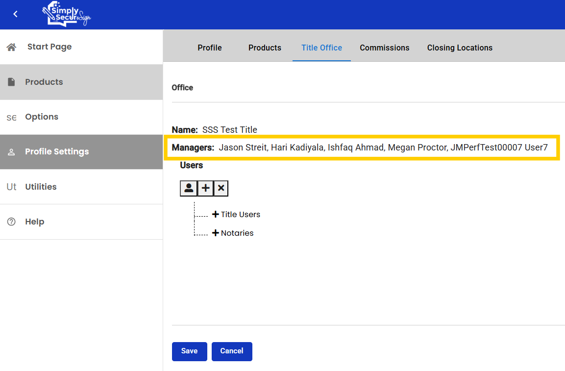 Adding a Title User/Manager *Note* A manager will need to add new title users and notaries Step 1) Navigate to Products/Maintenance/ Office Maintenance/Office Step 2) Search a lender in the "Office Name" search box and select "search." Step 3) Ensure ...
