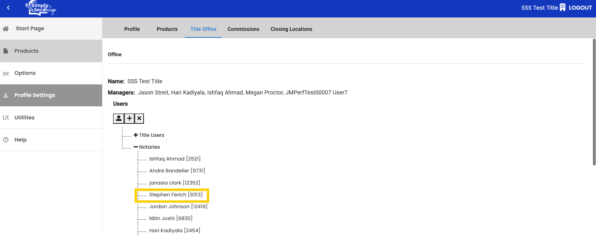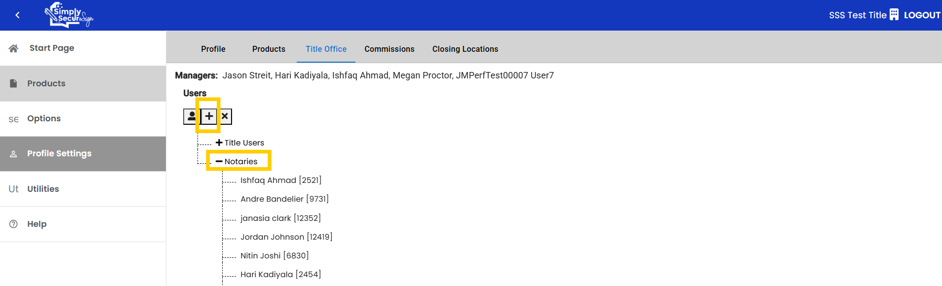 *Note* Only a manager of the Title Office can add a notary or title user to the Title Office.