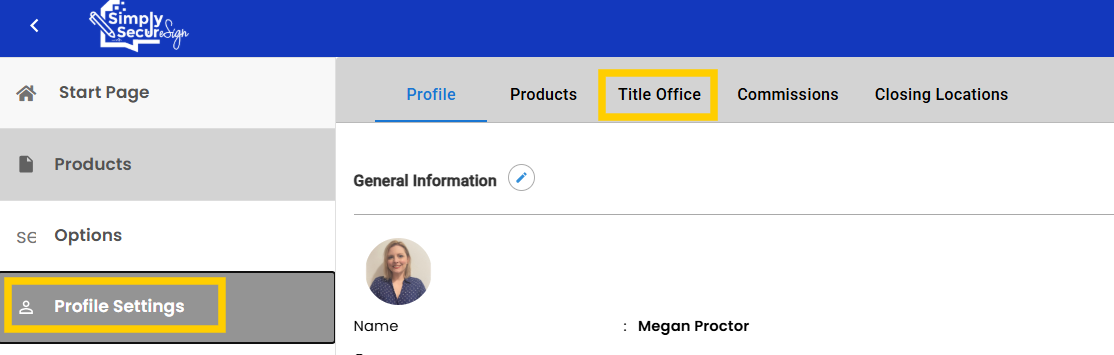Navigate to the user's Profile Settings/Title Office