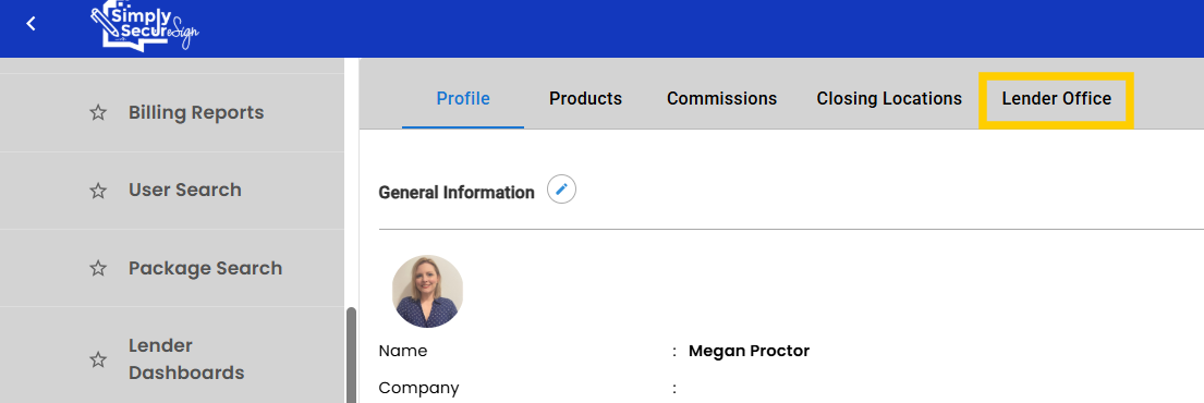 Navigate to the user's profile settings/Lender Office