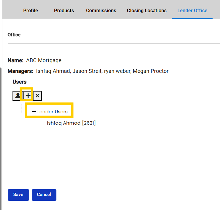 *Note* Only a manager of the Lender Office can add a user to a Lender Office.