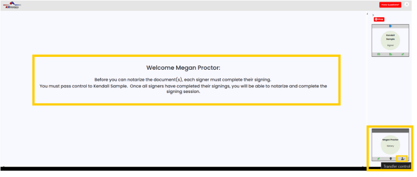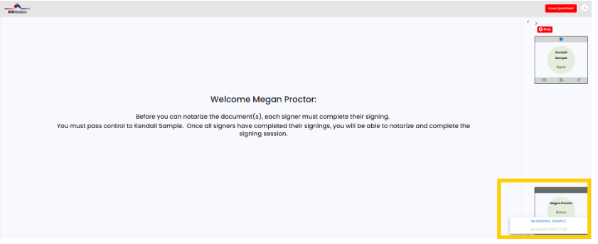 the notary's window (bottom,) the bottom right icon will allow the notary to