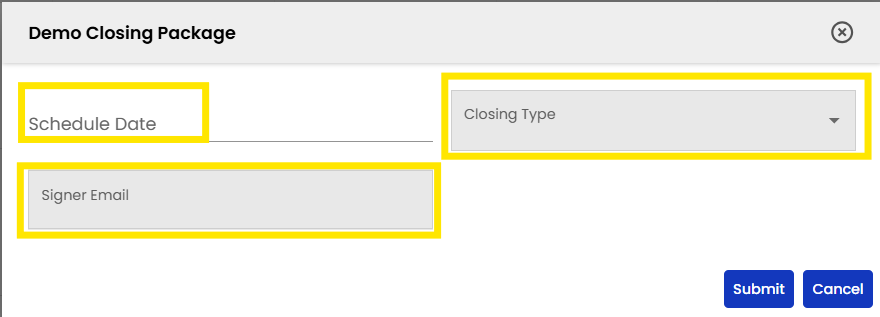 If you open up the blue bar for your scheduled demo, you will see sample information containing "DEMO," and "John Doe" as your signer so that you know this is a true demo/practice package.