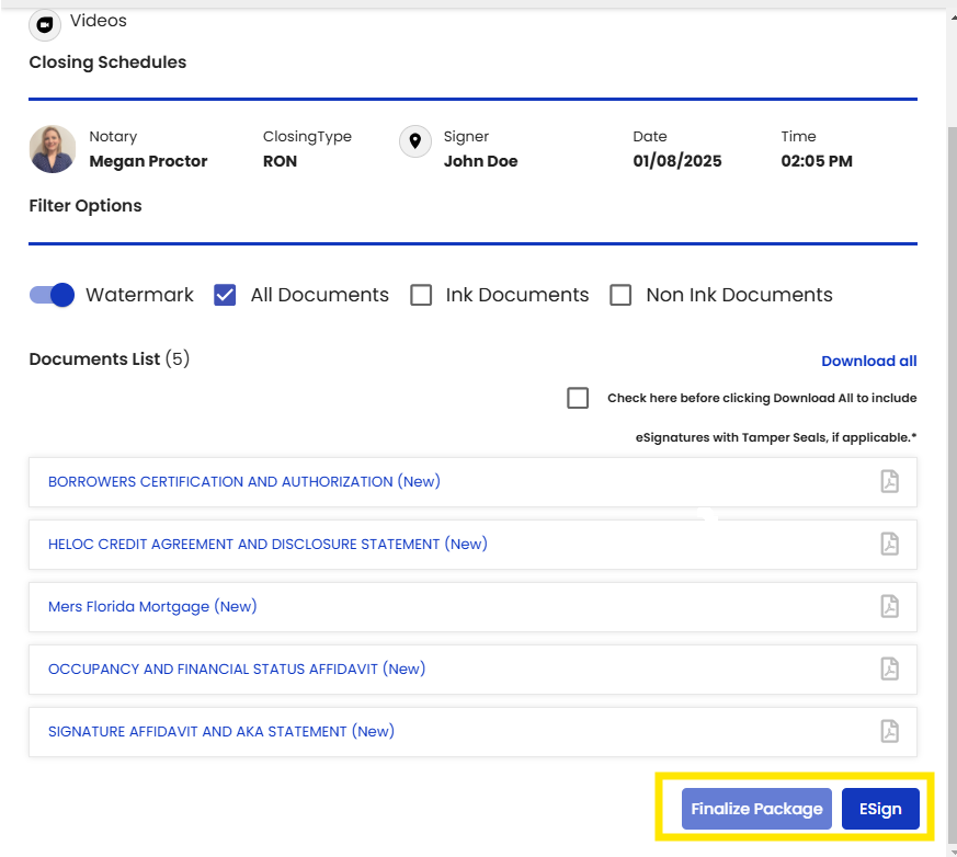 This sample package is set up as a RON package. Please see the How To on RON Closings to continue learning more about conducting a RON closing.
